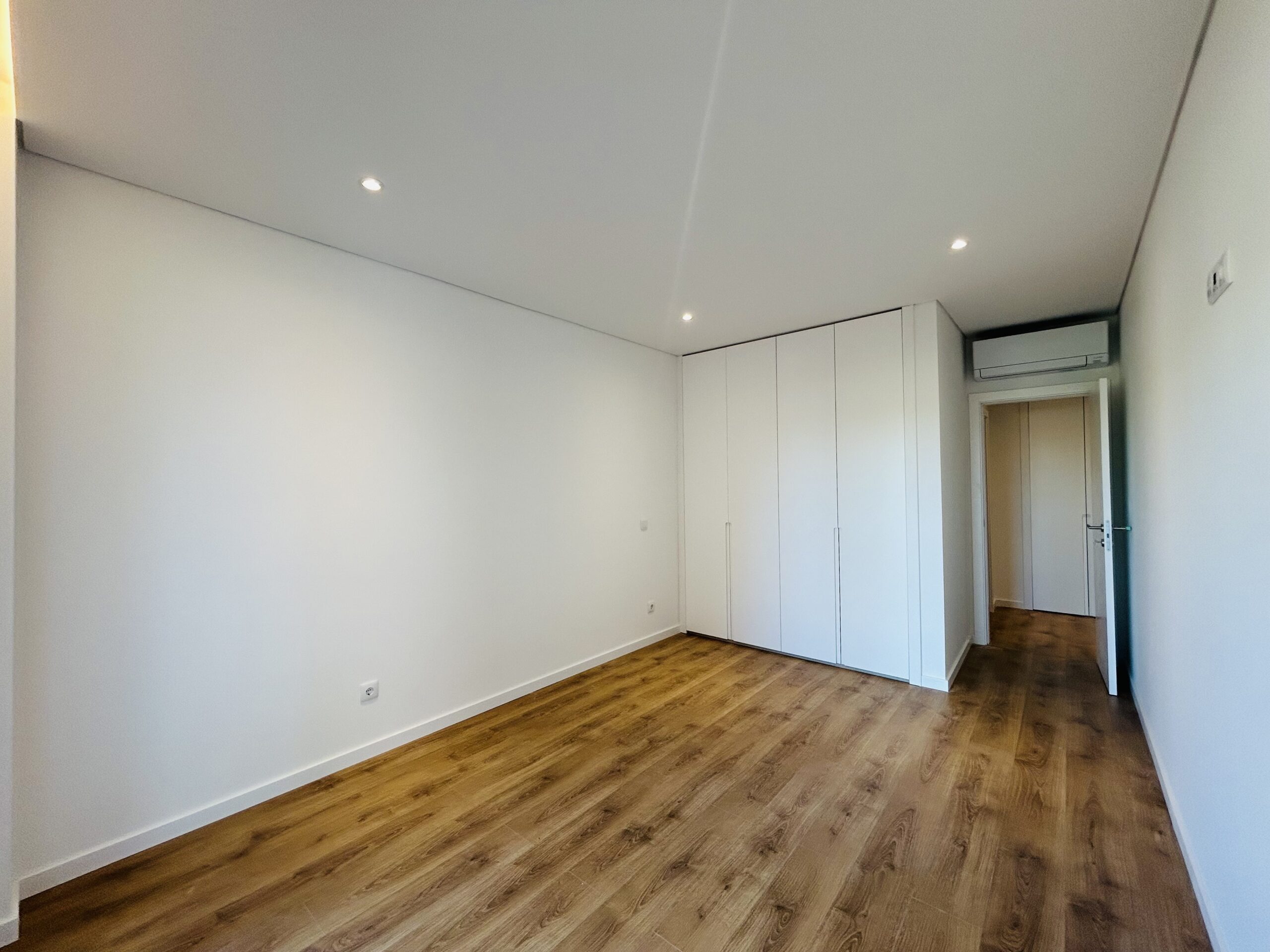 O apartamento disõe de porta de entrada blindada, tetos falsos em Pladur com iluminação embutida, vídeo porteiro e estores elétricos em alumínio térmico. O ar condicionado está presente na sala, cozinha e quartos, garantindo conforto em todas as estações.