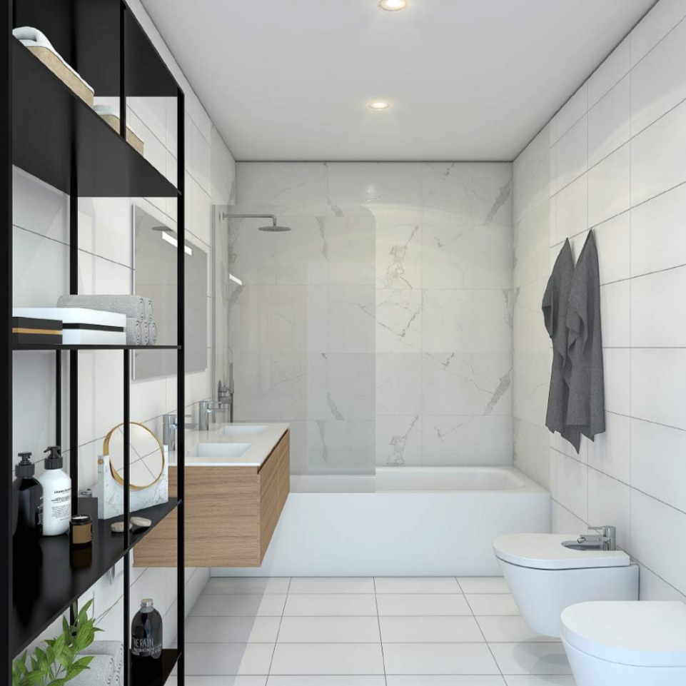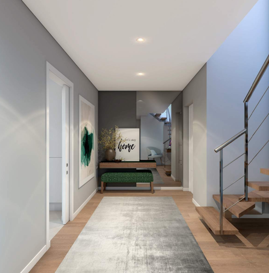 Os interiores desliguem-se pelo design elegante: pavimentos flutuantes, cozinhas equipadas com eletrodomésticos de alta gama encastoados e bancadas em silestone, casas de banho com louças suspensas e torneiras da marca grohe, e climatização através de ar condicionado.