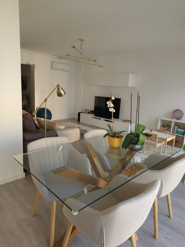 O apartamento dispõe de Cozinha totalmente equipada, ar condicionado em todas as divisões, portas e armários lacados a branco, chão flutuante, wcs completos e generosas varandas.
