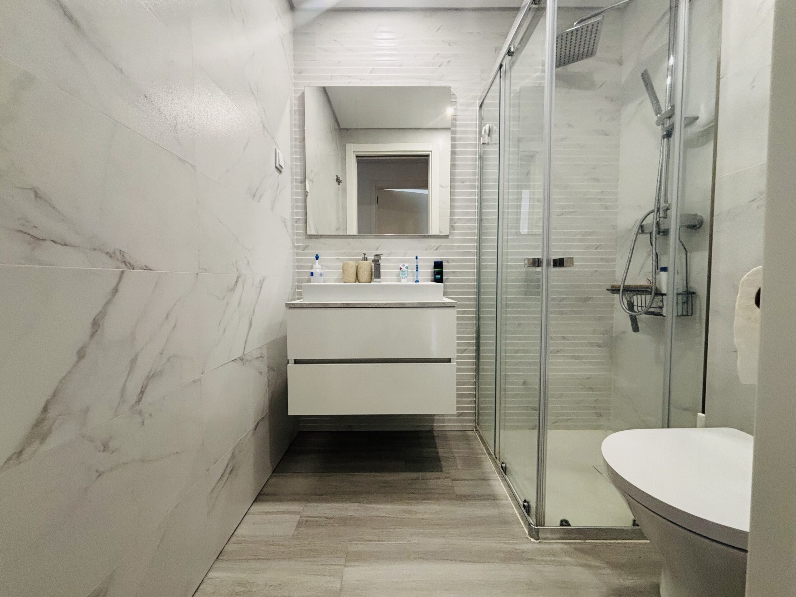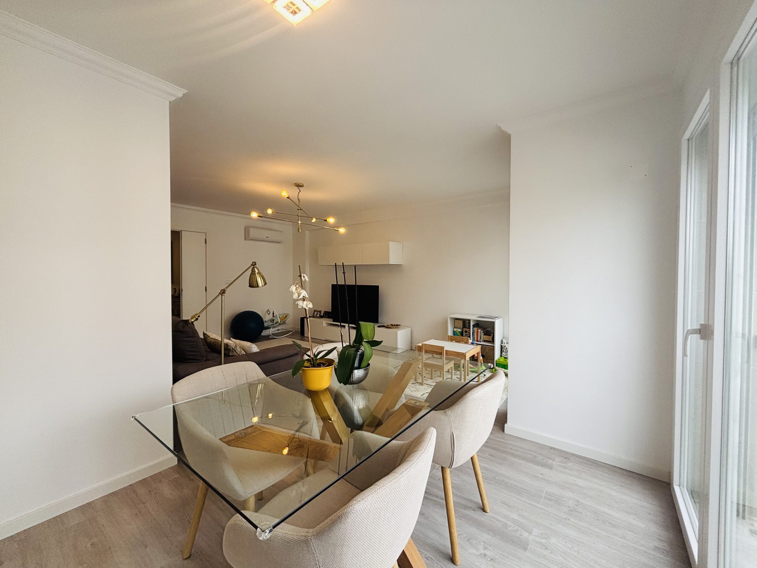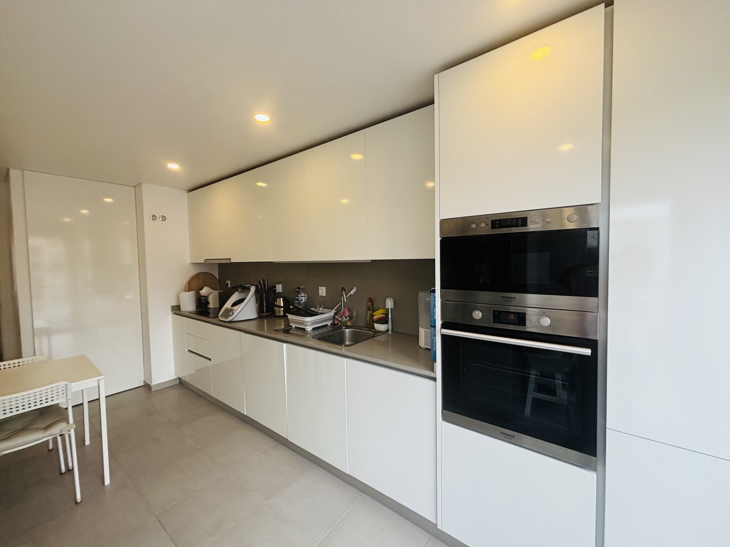 O apartamento dispõe de Cozinha totalmente equipada, ar condicionado em todas as divisões, portas e armários lacados a branco, chão flutuante, wcs completos e generosas varandas.