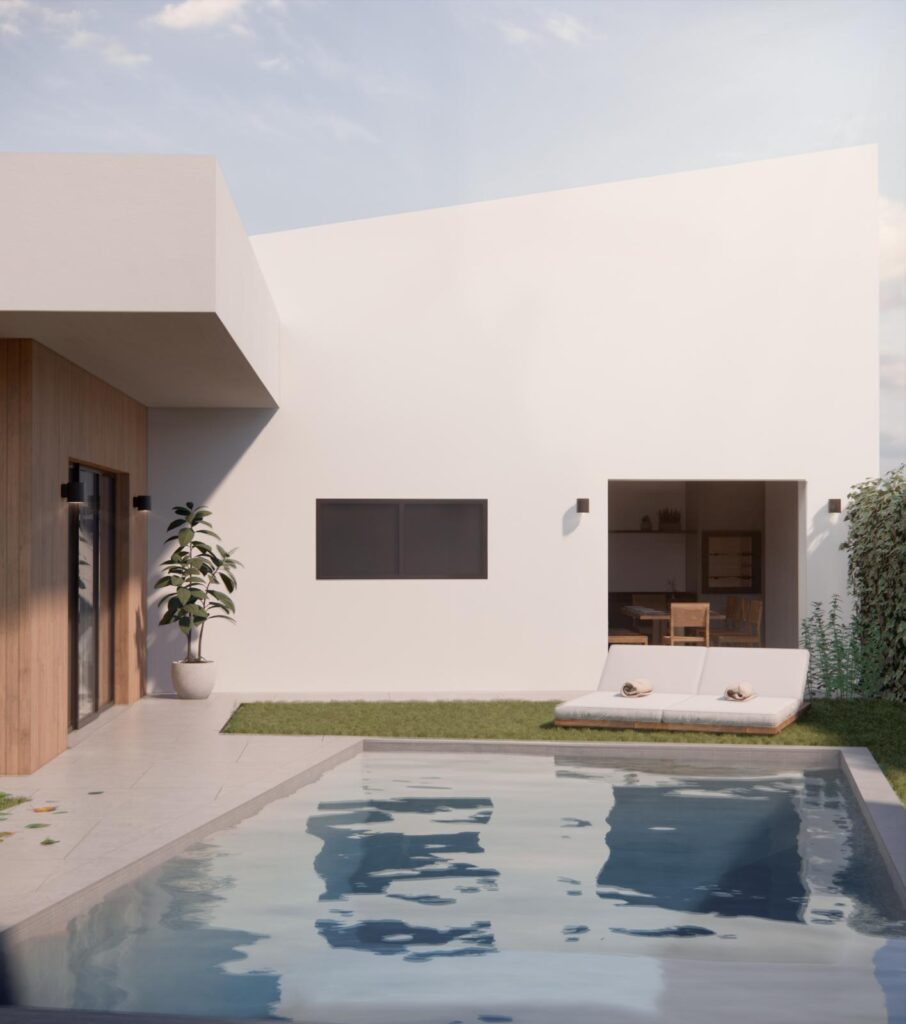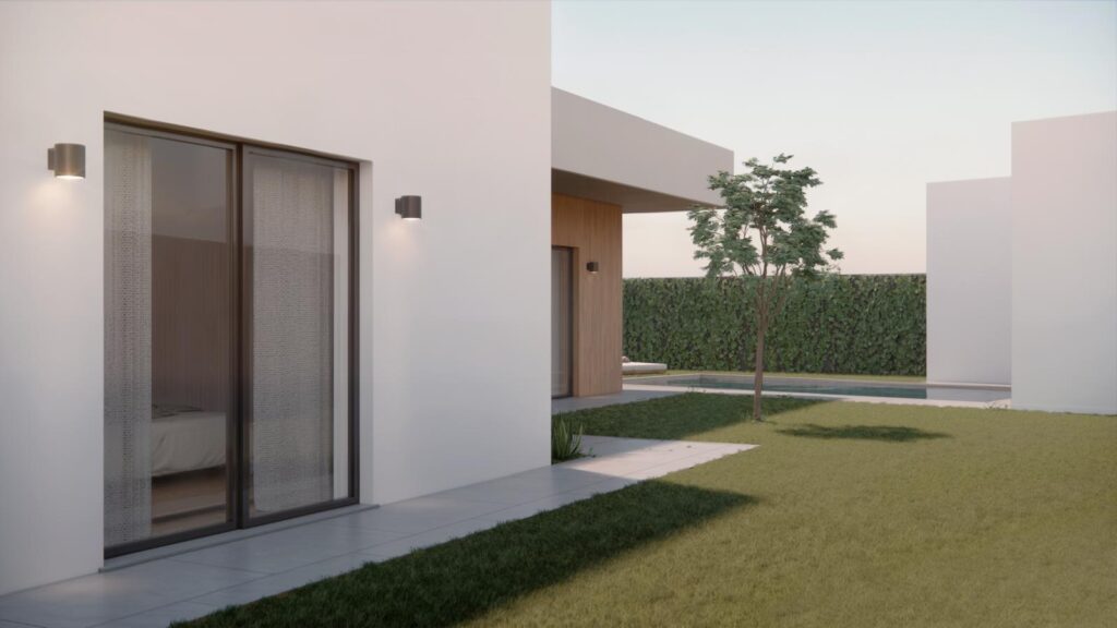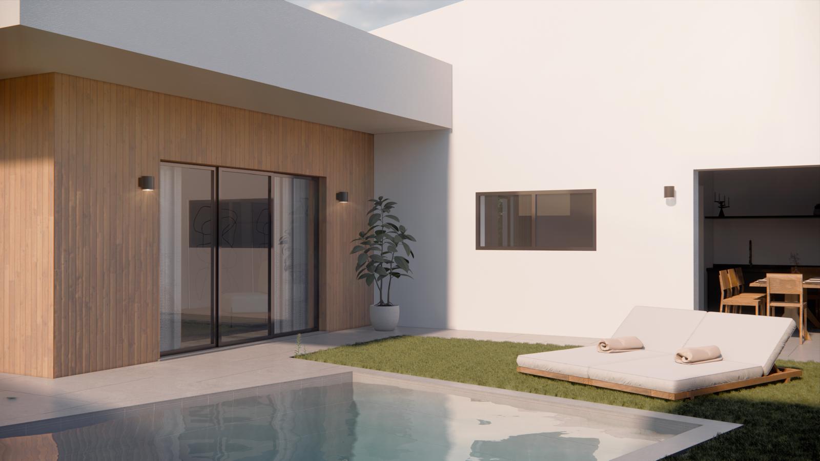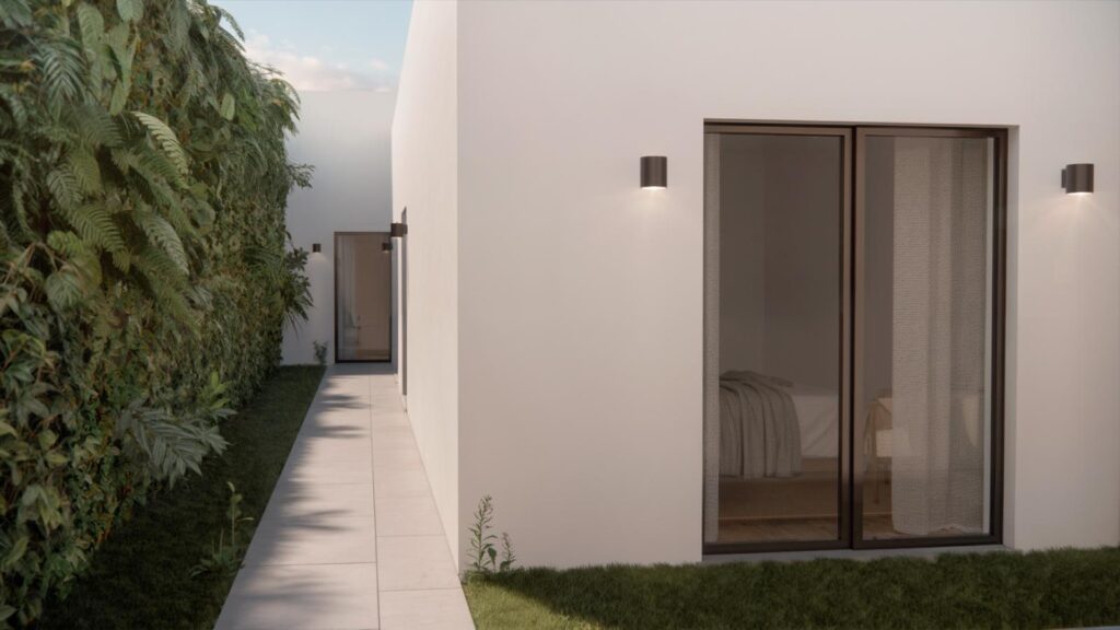 Cozinha totalmente equipada com eletrodomésticos de gama alta, Ilha centrada e móveis lacados a branco ou cinza (preferência do cliente), Chão Flutuante e ar condicionado em todas as divisões.